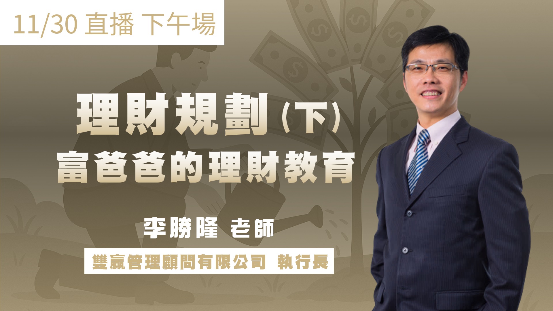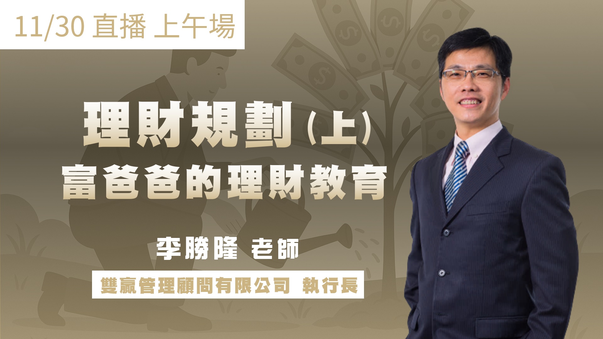 【直播課】11/30(日)上午 理財規劃(上)-富爸爸的理財教育 ︱李勝隆老師